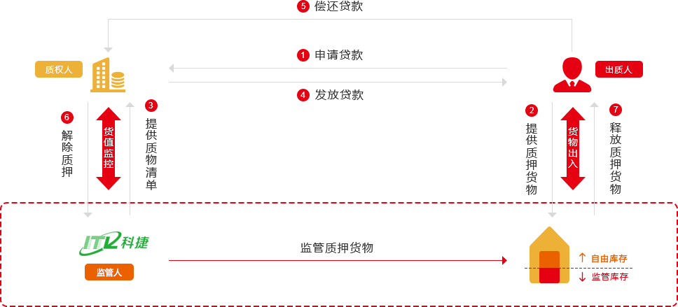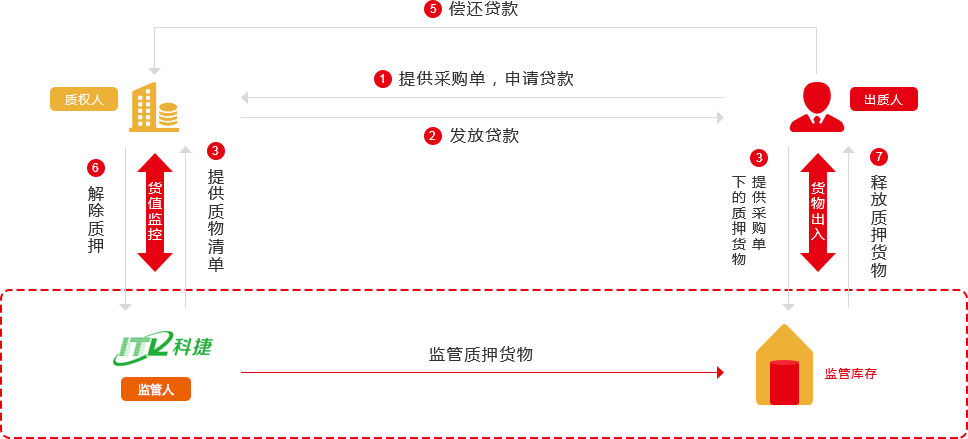 質權人提供產品單價、質押金額至監管人,監管人代為核算在庫貨值,并監控在庫質押金額。確保在庫貨值不低于質押金額;