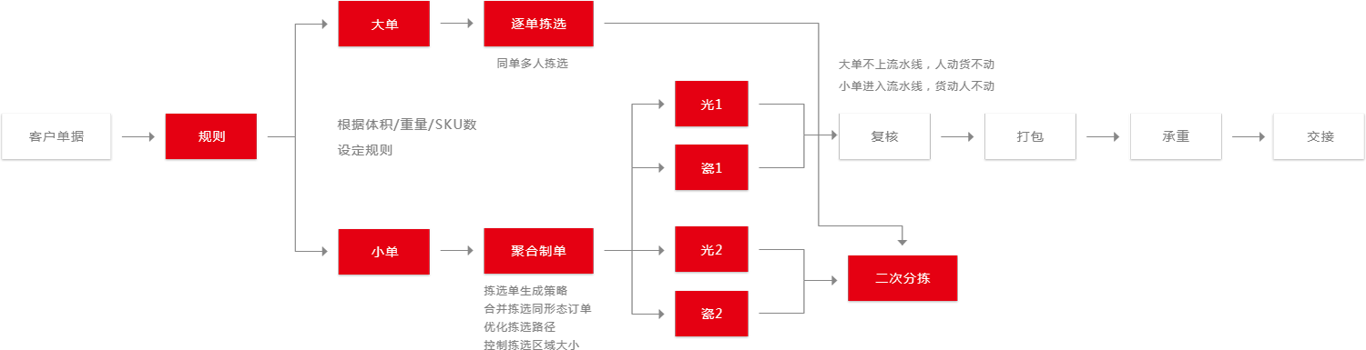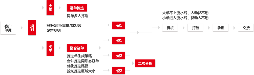 訂單分類,不同訂單類型匹配不同的下架和復核流程。提高復核效率、降低發貨錯誤。