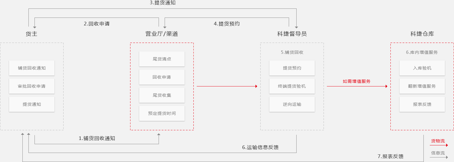 科捷物流為客戶提供演示機回收、滯銷貨回收、消退回收、拒收回收、故障機運輸返回中心倉/省倉/地市倉等逆向物流服務和賣場/渠道調撥物流服務。通過手機APP的支持,實現現場檢驗全程可視: SN/PN碼數據校驗、異常照片記錄、檢驗進度等;各種常見的現場檢驗的流程與異常問題,通過文檔和照片對現場人員進行培訓;嚴格要求按照確定的檢驗標準執行,避免擅自做主造成客戶的損失。