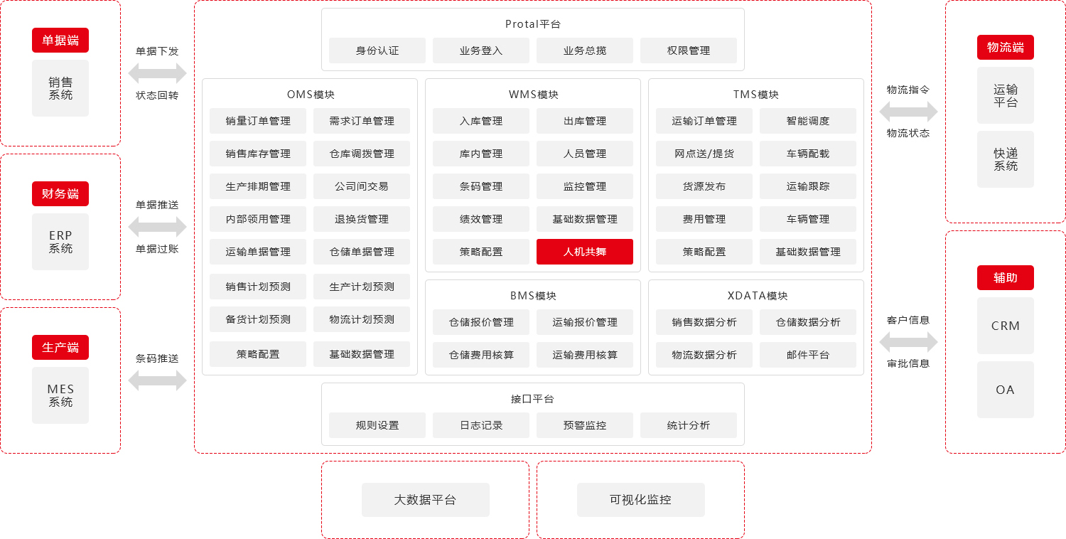 訂單管理(OMS)、倉儲管理(WMS)、運配管理(TMS)、核算管理(BMS)