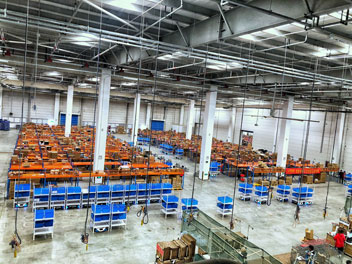 五千平米人機(jī)協(xié)同的倉庫,擅長處理倉儲管理中難度最大的幾類訂單--1)不同單品混合的訂單 2)不同單品混合并且數(shù)量不等的訂單