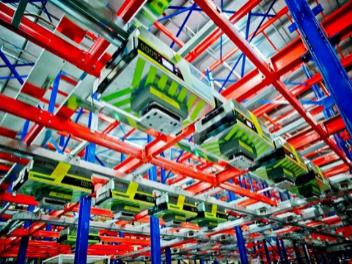 擁有多項(xiàng)國際技術(shù)發(fā)明專利,采用創(chuàng)新的高層懸掛式AGV系統(tǒng)及軌道機(jī)器人技術(shù),能夠充分而靈活地利用三維空間,極大提高倉庫場地利用效率