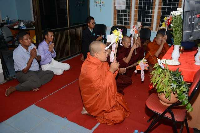 此次開倉儀式入鄉(xiāng)隨俗,采用緬式慶典形式--宋干(音同)舉行。緬甸是個(gè)全民信佛的國家,佛教氛圍濃厚,處處可見佛塔,人民樸實(shí)友善。此次開倉更是請來了當(dāng)?shù)刂畬W(xué)院馬哈伽納揚(yáng)的高僧祈福做法。馬哈伽納揚(yáng)是緬甸最大的僧學(xué)院,在這里進(jìn)修的僧侶數(shù)量過千,也被稱作“千人僧院”。