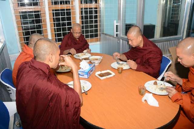 儀式結(jié)束后僧人在吃主人準(zhǔn)備的早飯