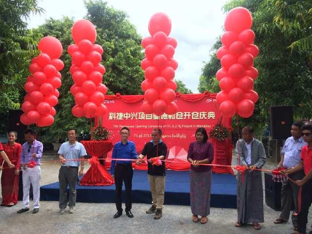 科捷物流常務(wù)副總裁陳滔滔先生,中興交付部亞太物流倉儲(chǔ)總監(jiān)黃忠湘先生,中興全球物流部海外關(guān)務(wù)總監(jiān)喻捷先生,科捷物流在緬合作伙伴Great Alpha總裁 Aung Kyaw Myint,緬甸相關(guān)政府官員共同參加了此次開倉盛典。