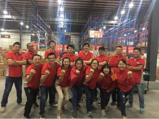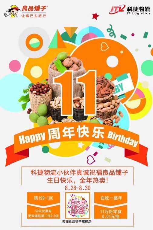 科捷鄭州倉清零后集體合影,祝賀良品鋪子828大促--11周年大慶生日快樂: