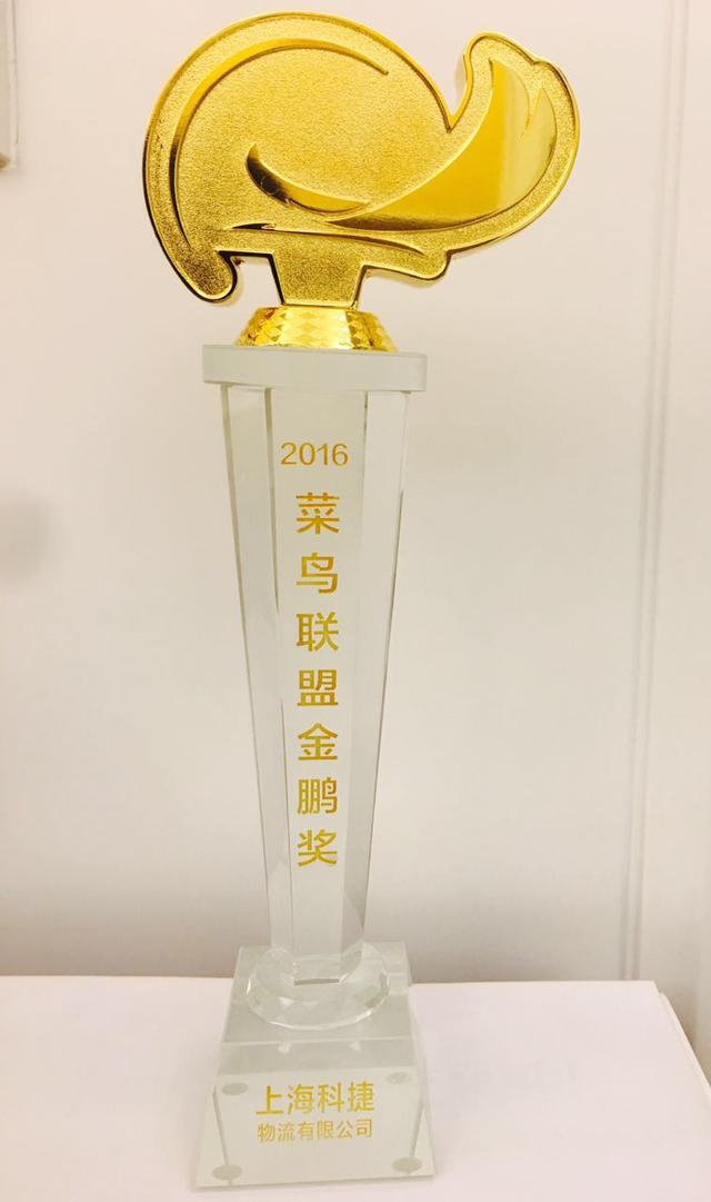 2017年1月9日,阿里旗下菜鳥網絡在浙江嘉興舉行了“2016年菜鳥聯(lián)盟CP答謝會”。科捷物流集團總裁帥勇出席了此次答謝會,并領取了菜鳥網絡頒發(fā)的倉儲唯一綜合實力大獎—金鵬獎。
