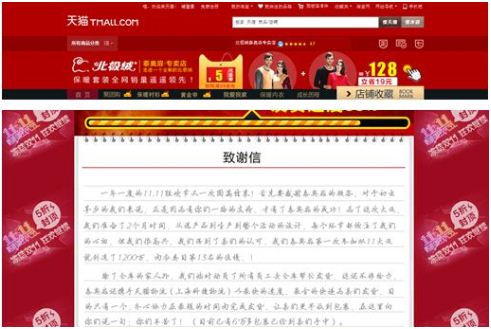 北極絨在天貓泰奧菲專賣店首頁公開發表了致謝信